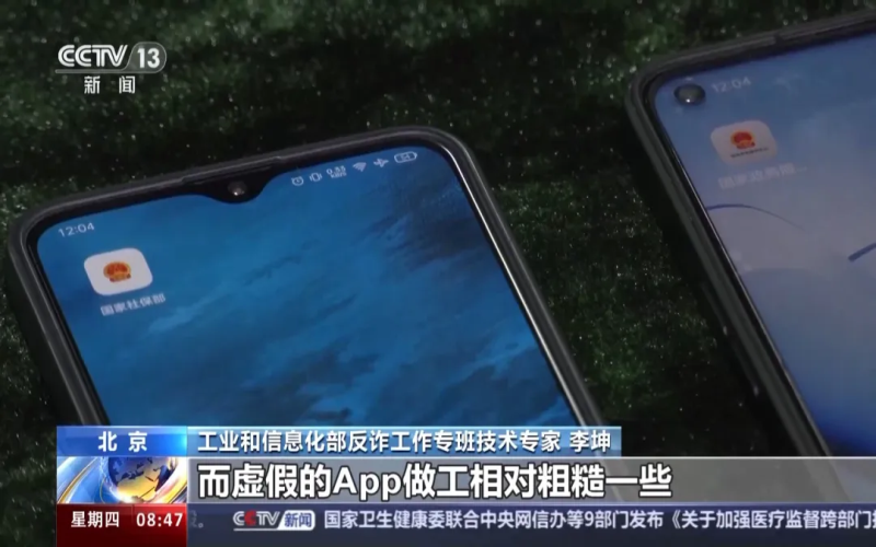 工業(yè)和信息化部反詐工作專班技術(shù)專家 李坤:大家可以看到這兩個(gè)手機(jī),其中左邊是我們發(fā)現(xiàn)的一個(gè)虛假App,它的名稱叫國家社保部,圖標(biāo)采用的是一個(gè)國徽的樣式。右邊是真正的一個(gè)App,名字叫國家政務(wù)服務(wù)中心。這兩個(gè)App在圖標(biāo)上簡(jiǎn)單一看十分相似,但是通過仔細(xì)看可以觀察到,在真實(shí)的App上,它的顏色包括文字都更加清晰,而虛假的App做工相對(duì)粗糙一些。我們?cè)倏匆幌吕锩娴男畔ⅲ紫仍谡嬲倪@些App上,可能會(huì)有一些比較復(fù)雜的功能,包括頁面設(shè)計(jì)比較精美。在假的App上會(huì)直接邀請(qǐng)你去登錄,而且登錄通常需要注冊(cè)賬號(hào),在注冊(cè)賬號(hào)的場(chǎng)景下邀請(qǐng)你填入推薦人的邀請(qǐng)碼。像這種邀請(qǐng)碼基本上就是定向詐騙,只有詐騙分子給了你這個(gè)特定的邀請(qǐng)碼之后才能進(jìn)入這個(gè)平臺(tái)。