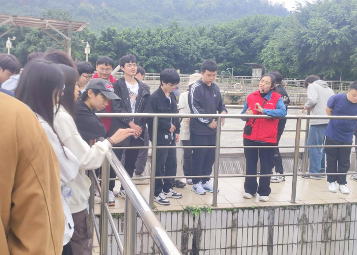 培訓(xùn)中,惠泉公司三名管理人員分別帶隊(duì),組織學(xué)生參觀了入水口、粗格柵、細(xì)格柵、沉砂池、生化池、脫水車間、濾池、出水口等污水處理設(shè)施,詳細(xì)講解污水處理工藝。學(xué)生們一邊認(rèn)真聆聽講解,一邊仔細(xì)觀察污水處理的各個(gè)環(huán)節(jié),不時(shí)提出問題與講解員進(jìn)行交流。通過參觀與互動,學(xué)生對污水處理的每個(gè)環(huán)節(jié)有了深入了解,親眼見證了“渾流變清泉”的污水處理奇跡。